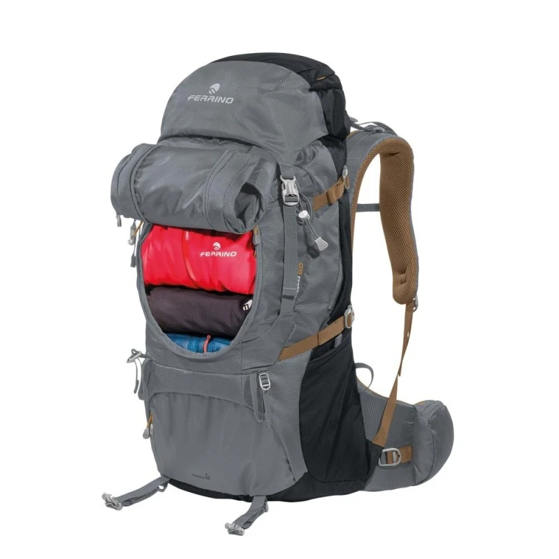 - Dorso ergonomico con sistema di regolazione “Double Ergo Adjustment”, che av-viene mediante lo scorrimento della slitta spallacci su un’armatura doppia in alluminio automodellante, per una migliore distribuzione dei carichi in corrispondenza della fascia a vita