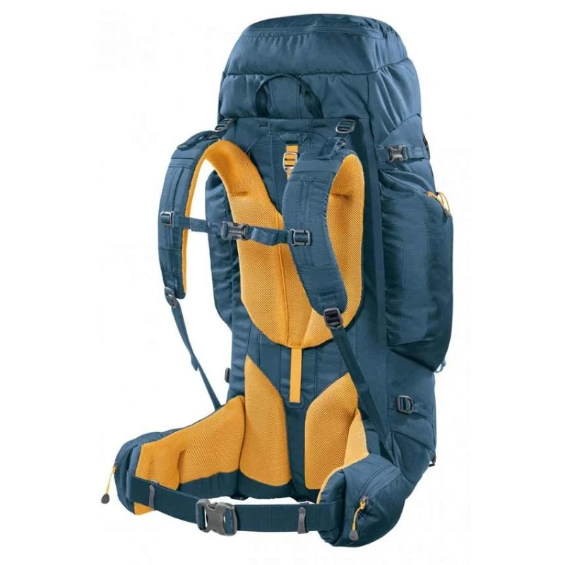 - Dorso ergonomico con sistema di regolazione “Double Ergo Adjustment”, che avviene mediante lo scorrimento della slitta spallacci su un’armatura doppia in alluminio automodellante, per una migliore distribuzione dei carichi in corrispondenza della fascia a vita